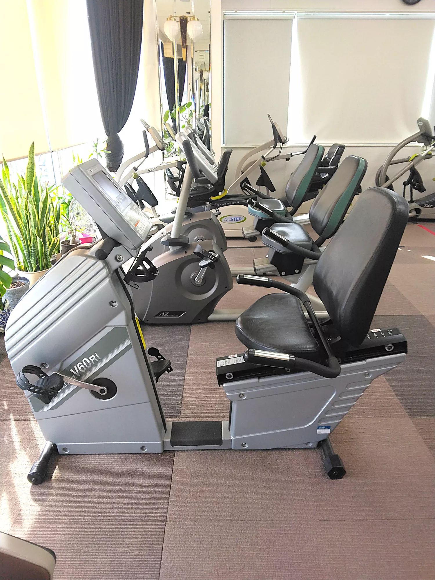 リカンベントとは、「横たわる』の意味で、背もたれに寄りかかりながら無理なく有酸素運動ができます。ハンドルよりペダルが前方にあるため、通常のエアロバイクより移乗しやすい設計になっています。